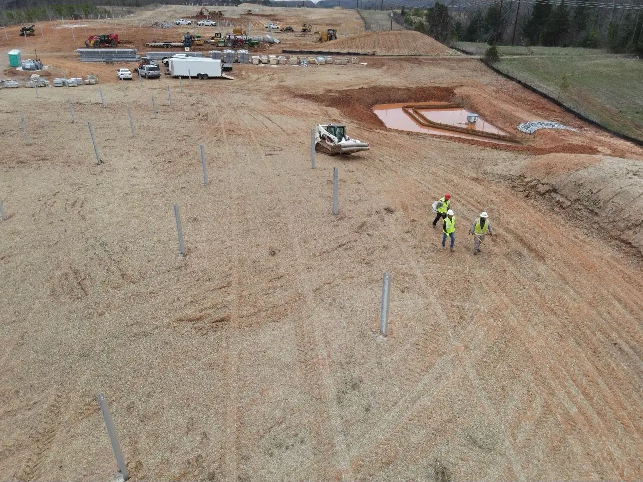 For this 40-acre solar farm project, our team executed a comprehensive site development plan, beginning with civil grading to reshape the land for optimal functionality. We installed retention basins to effectively manage stormwater runoff, ensuring proper drainage and erosion control.